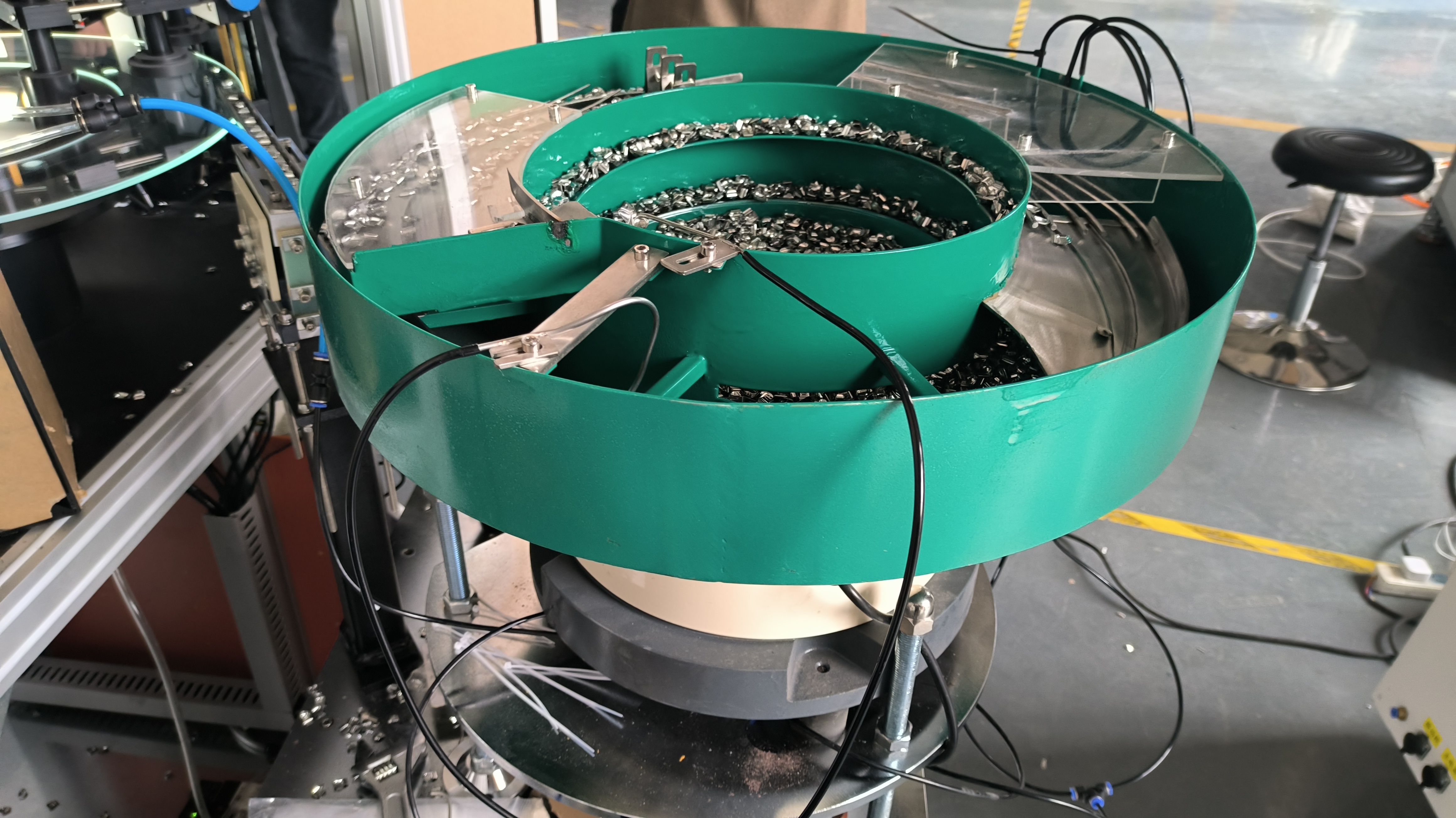 1.     通過定制高速振動盤高速上料                                      2.   依次順序和姿態(tài)運動到工業(yè)高清相機底部                     3.   通過工業(yè)相機高速拍照識別篩選一分鐘可達≥300